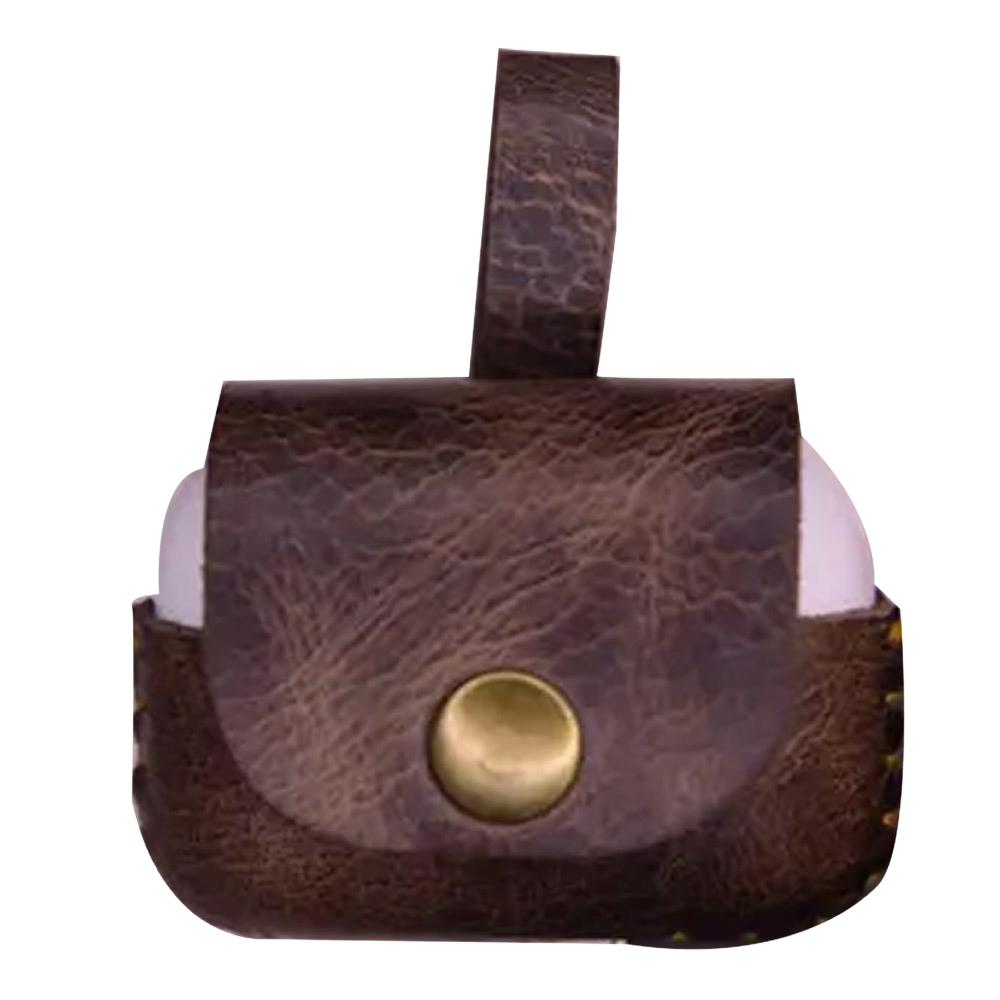 Elevate your tech accessories with this premium brown and black leather cover for AirPods or similar wireless earbuds. Handcrafted from genuine cowhide leather, this compact case features a secure brass-tone snap closure for easy access and protection. Available in rich brown or sleek black, it combines durability with sophisticated style, making it the perfect blend of functionality and elegance for your everyday carry.
